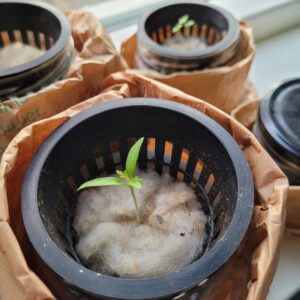 Nu moet ik zeggen dat met de hydrocultuur vaak (kunstmatige) meststoffen gebruikt worden en kunstlicht. Deze elementen weerhielden me er eigenlijk van om echt te gaan beginnen. Nu kwam ik iets tegen wat dichterbij mij ligt. Daar heb ik mijn eigen sausje nog over heen gedaan (eigen meststoffen) en nu ben ik dit toch gaan proberen. Met resultaat moet ik zeggen, althans, het is nog pril maar je ziet wat opkomen!
